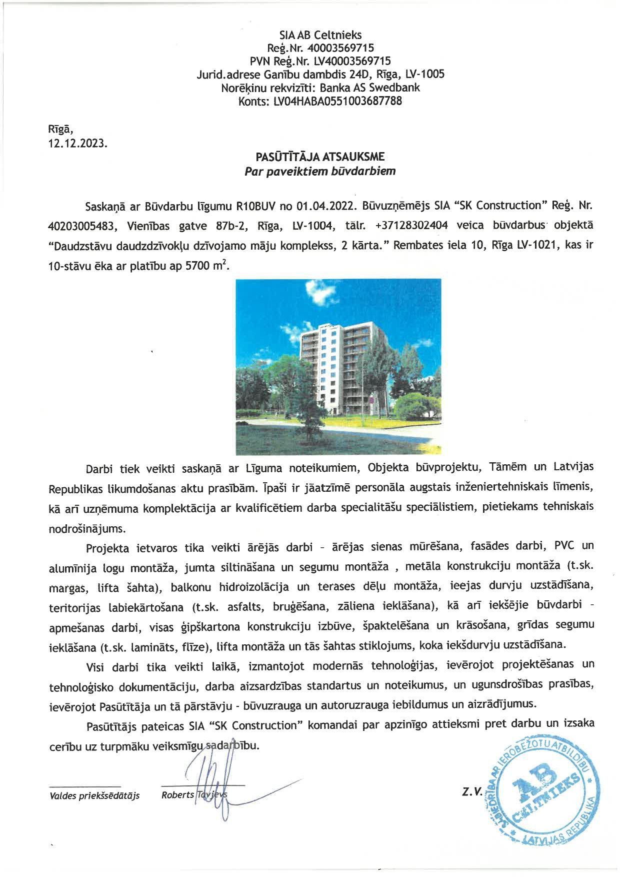 Apmešanas darbi, visas ģipškartona konstrukciju izbūve, špaktelēšana un krāsošana, grīdas segumu ieklāšana (t.sk. lamināts, flīze), ārējo sienu mūrēšana, fasādes darbi, PVC un alumīnija logu montāža, inženierkomunikācijas darbi